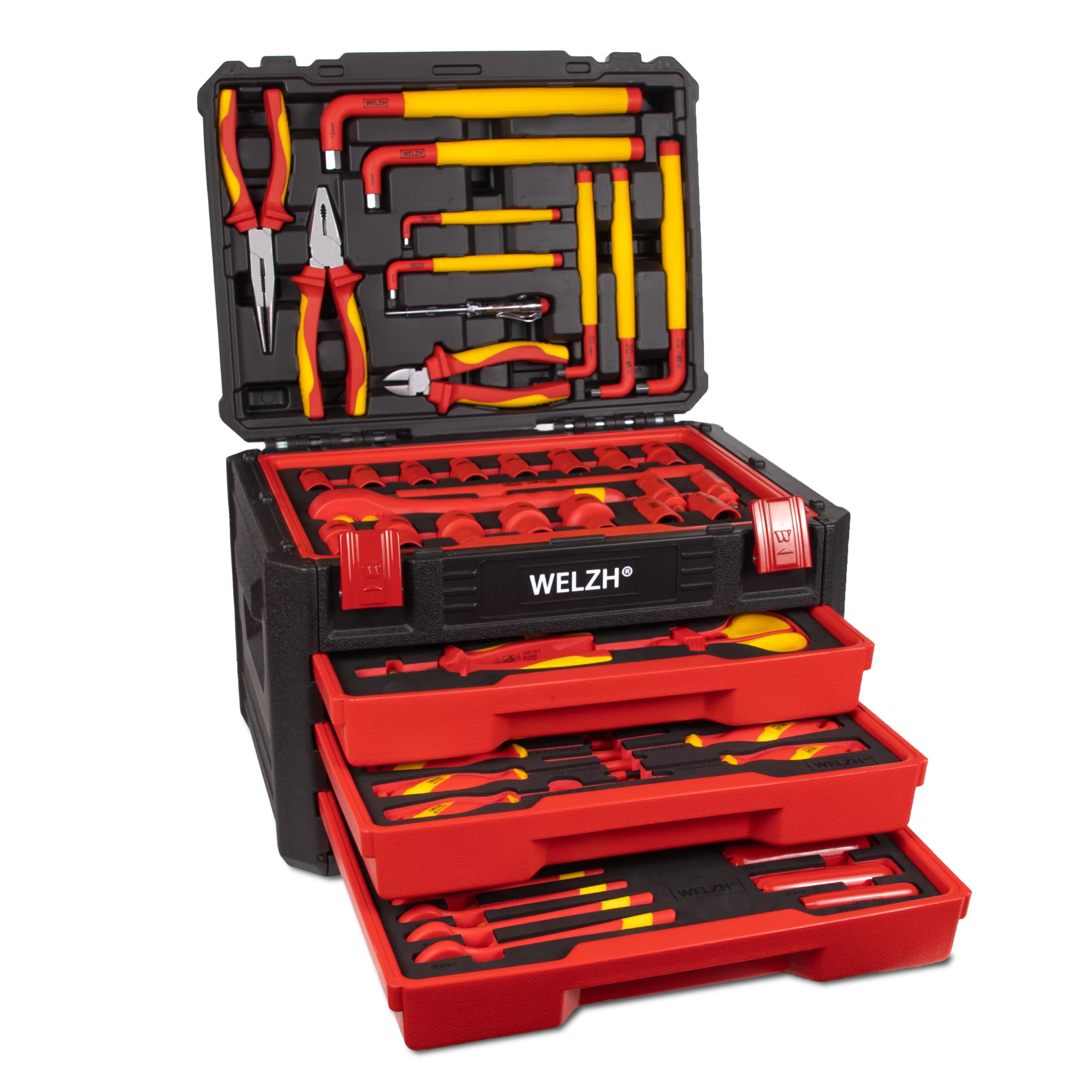 Welzh Werkzeug 4961-WW VDE 1000 V-os szigetelt szerszám készlet hibrid autókhoz, 63 részes