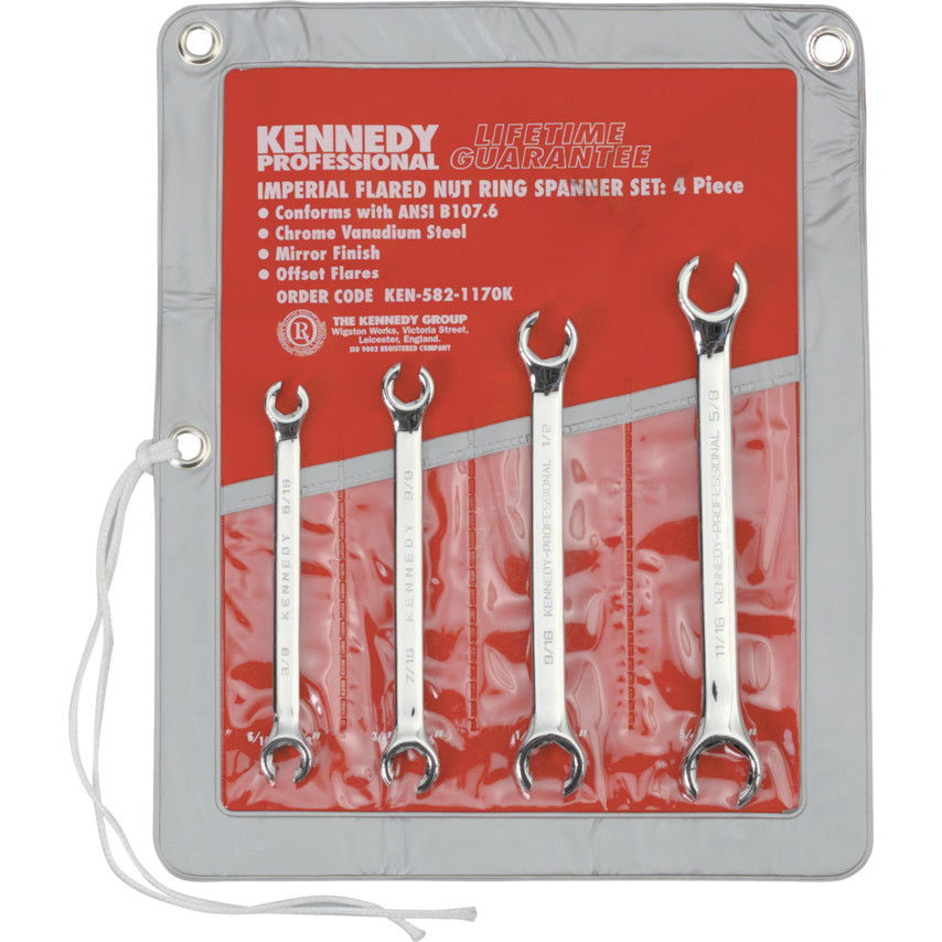KENNEDY 5/16" - 11/16" professzionális ipari fékcsőkulcs készlet, 4 részes