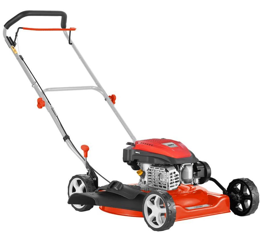 - A fűnyíró erős OHV motorral van felszerelve, amelynek maximális nyomatéka 6,5 Nm és térfogata 141 cm3, amely elegendő teljesítményt biztosít még sűrűbb pázsitok kezelésére is.