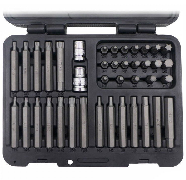 • torx bit, rövid, 30 mm hosszú: T20, T25, T30, T40, T45, T50, T55