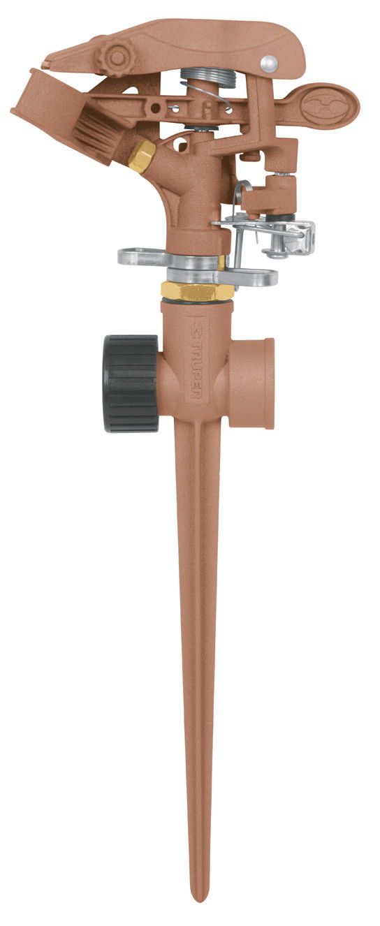 Pulzáló locsoló, sárgaréz-alumínium locsoló, leszúrható és átfolyó összekötővel (18m átmérőjű hatótáv)