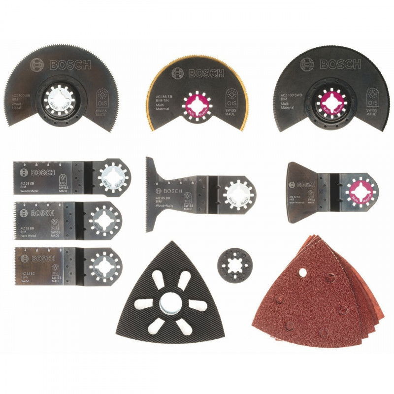 | Szett tartalma | Wood and Metal ACZ 100 BB BIM szegmens fűrészlap (1x) / Multi Material ACZ 85 EIB BIM TiN szegmens fűrészlap (1x) / ACZ 100 SWB BIM hullámos élezésű szegmens kés (1x) / Wood and Metal AII 65 APB BIM merülő fűrészlap (2x) / Wood and Metal AIZ 32 APB BIM merülő fűrészlap (2x) / Hard Wood AIZ 32 BSPB BIM merülő fűrészlap (2x) / Wood AIZ 32 EPC HCS merülő fűrészlap (2x) / ATZ 52 SFC HCS kaparóvas (2x) / AVZ 93 G csiszolótalp (1x) / Wood and Paint csiszolólap (20x) |