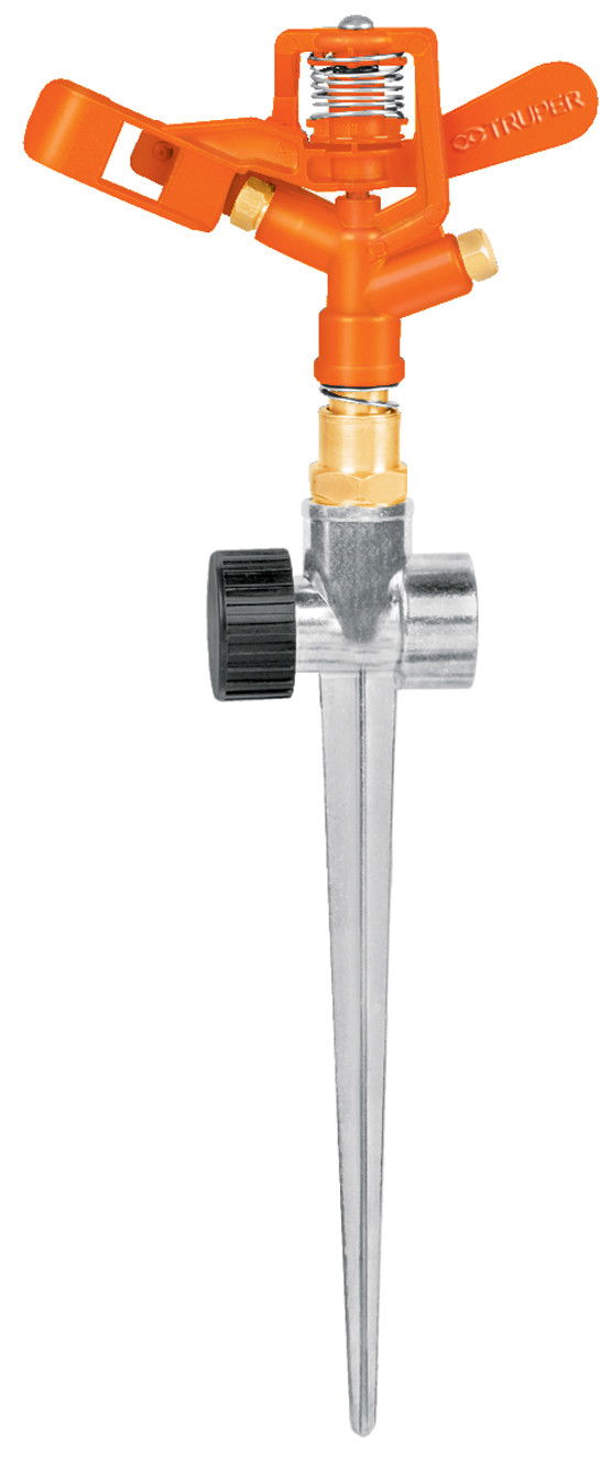 Dupla vízsugarú, sárgaréz forgó locsolófej, leszúrható és átfolyó összekötővel