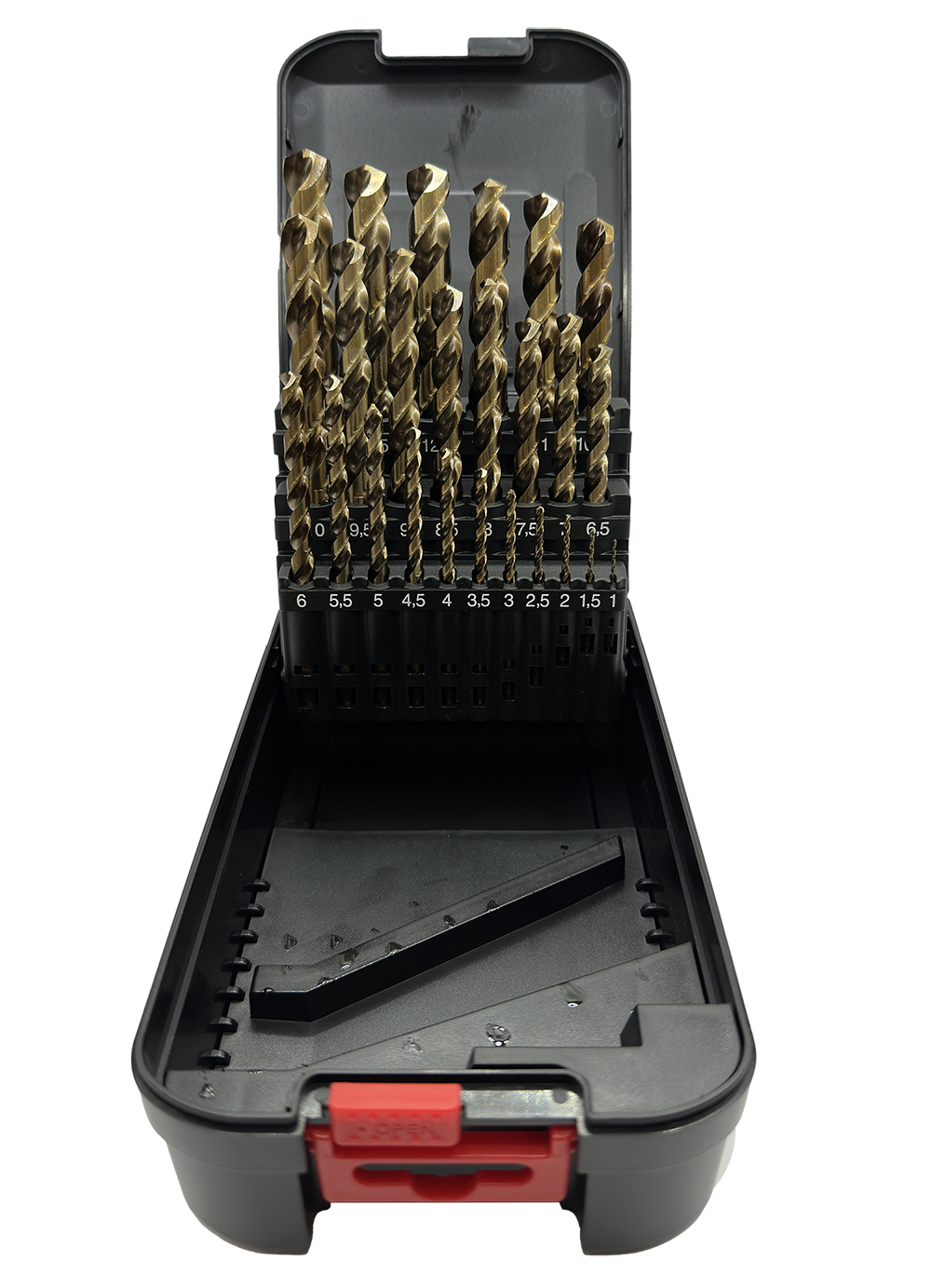 Abraboro HSS-Co 25 részes fémfúró készlet, műanyag dobozban