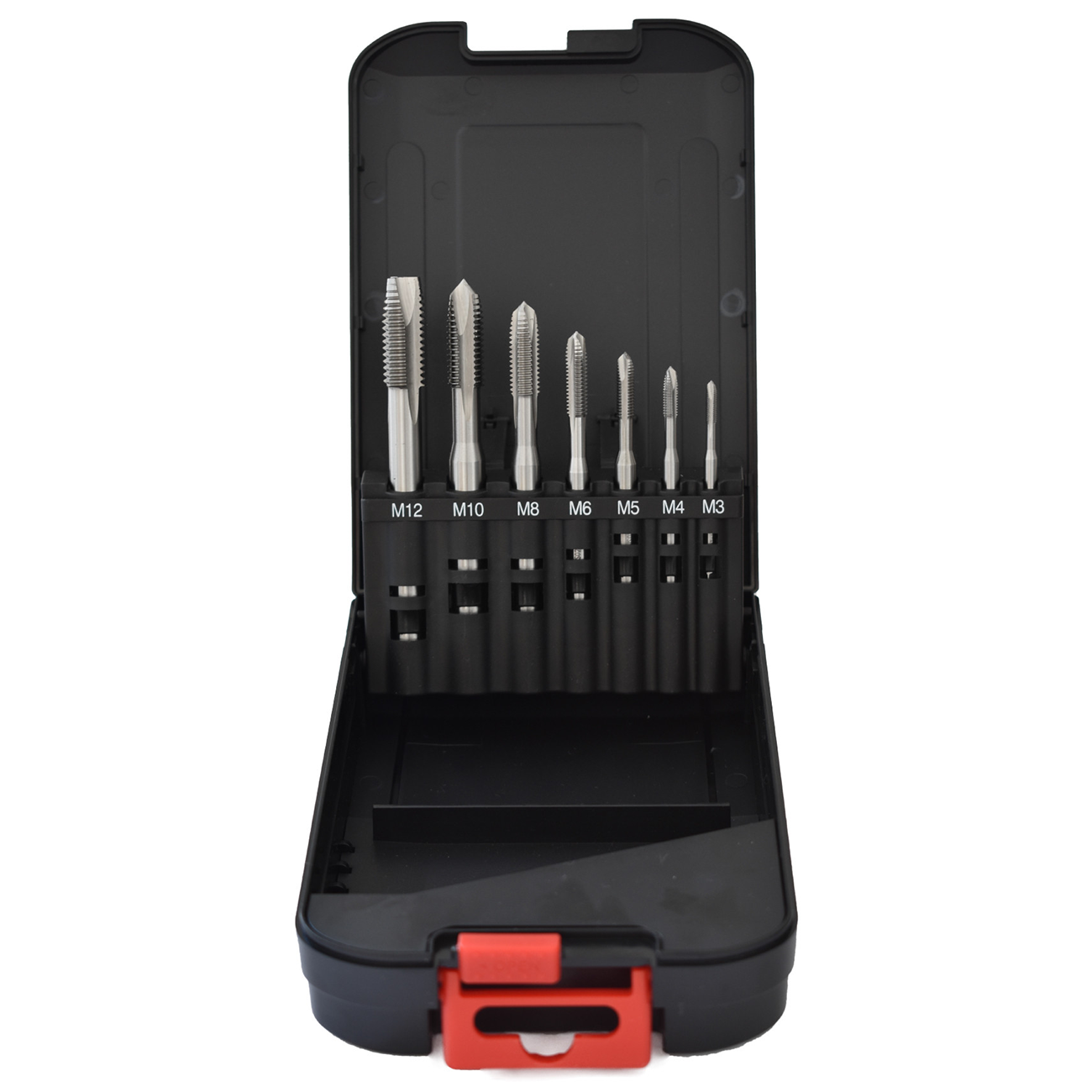 Abraboro HSS-Co 7 részes gépi menetfúró készlet 4-5 terelőéllel átmenőfurathoz (DIN 371 B)
