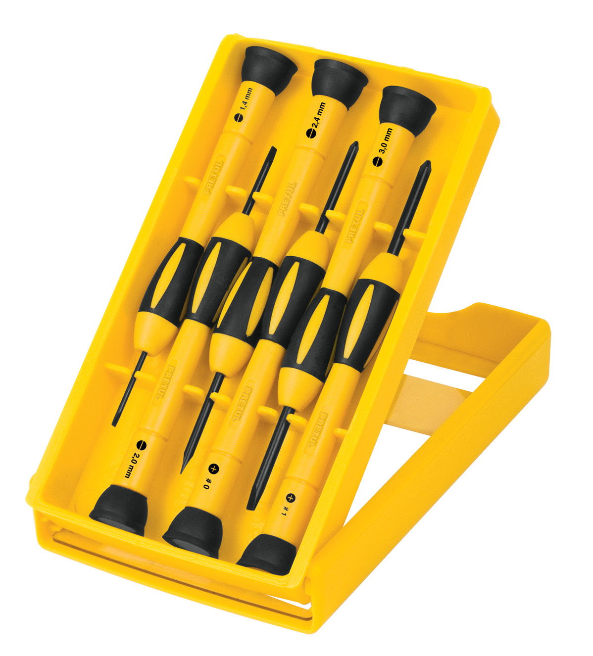 Órás csavarhúzó készlet,6 db-os,ergonomikus,forgóvégű nyél,műanyag tokban,PRETUL