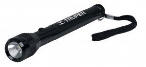 Elemlámpa, fekete színű, vízálló, ütésálló, övre akasztható, 2 db elemmel