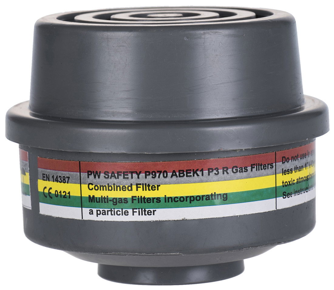 ABEK1P3 típusú kombinált szűrő, amely véd szerves és szervetlen savas gázok és gőzök, kén-dioxid, ammónia és származékai ellen.