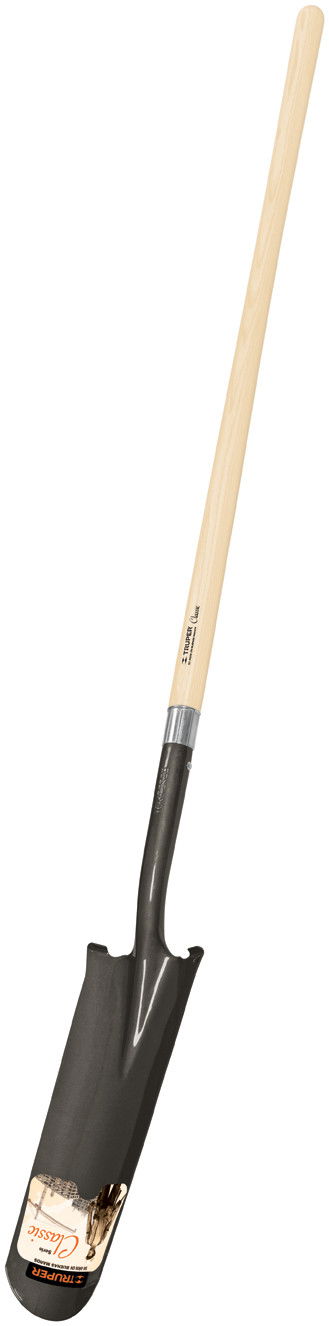 Csatornázó v. karólyuk ásó, 41 cm hőkezelt acél fej, 125 cm lakkozott fa nyél