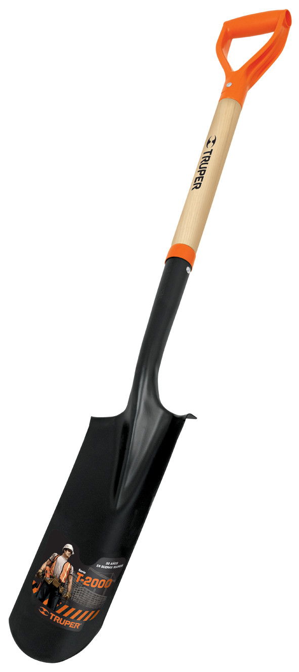 Csatornázó v. karólyuk ásó, 36 cm hosszú hőkezelt acél fej, 75 cm lakkozott fa D- nyél