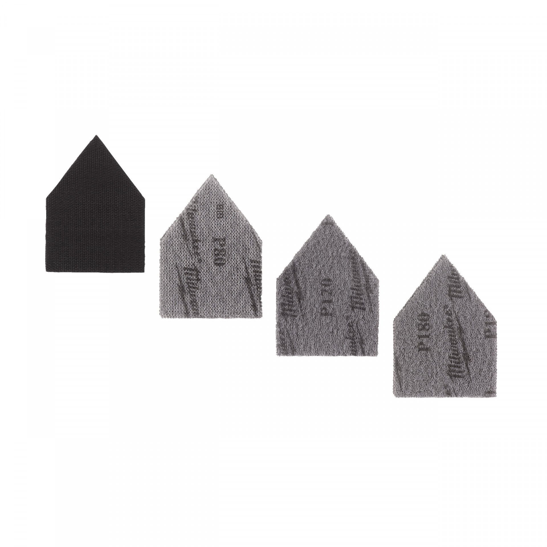 Milwaukee Powergrid csiszolóháló M12 FDSS deltacsiszolóhoz, 67x92 mm, 80-as / 120-as / 180-as finomság, 12 db + 1 db csiszolótalp védő