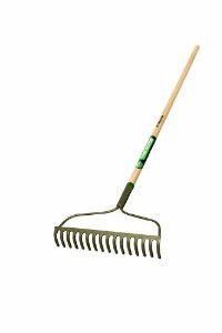 Gereblye, 42 cm széles fej, 16 fog, 137 cm hosszú lakkozott fa nyél,csúszásmentes vég