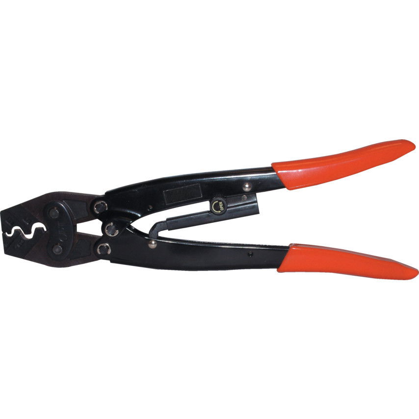 • Saruzó fogó reteszelt préskerettel és állítható présnyomással szigeteletlen kábelsarukhoz.